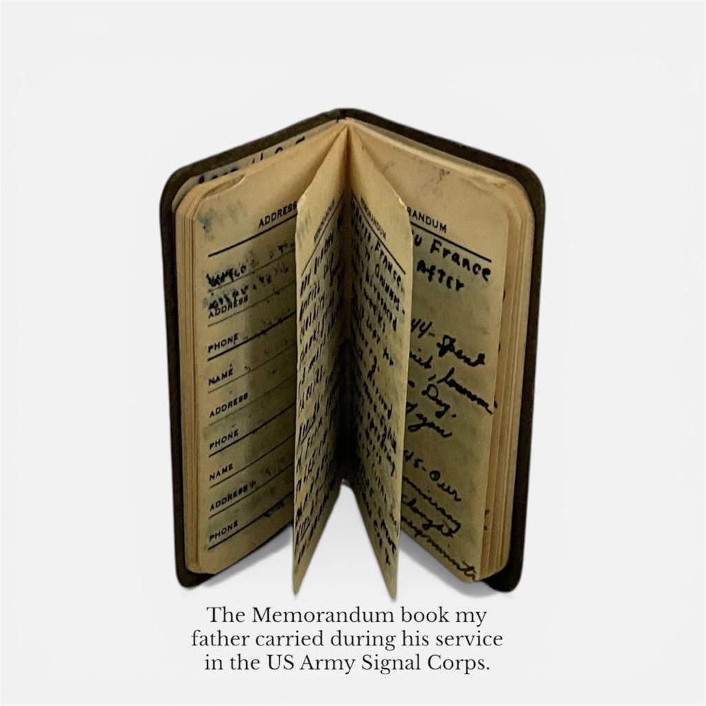 My father’s little pocket Memorandum book he carried on him throughout the war