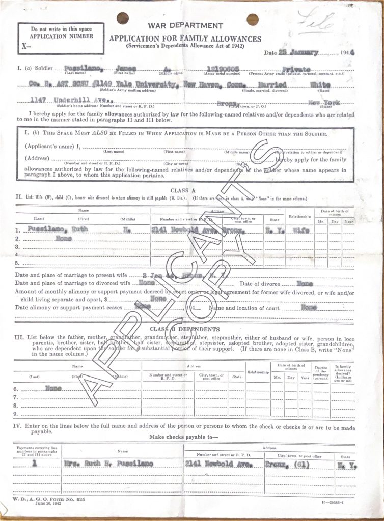 Archival Document: War Department Family Allowance Application Army Training Schools –