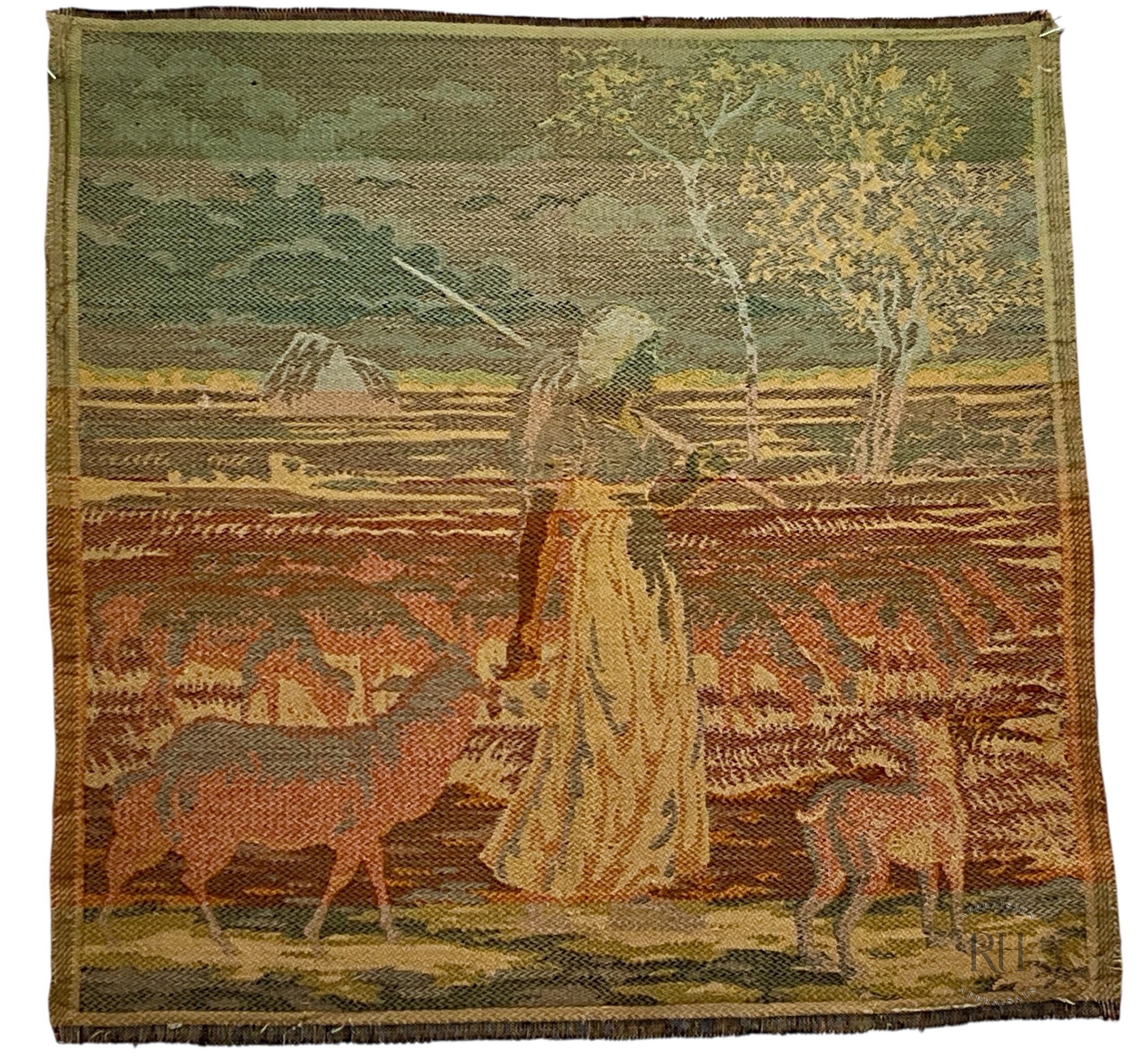 While not of early atelier origin, these panels reflect the continued appreciation of European pastoral tapestry design within later decorative textile production.